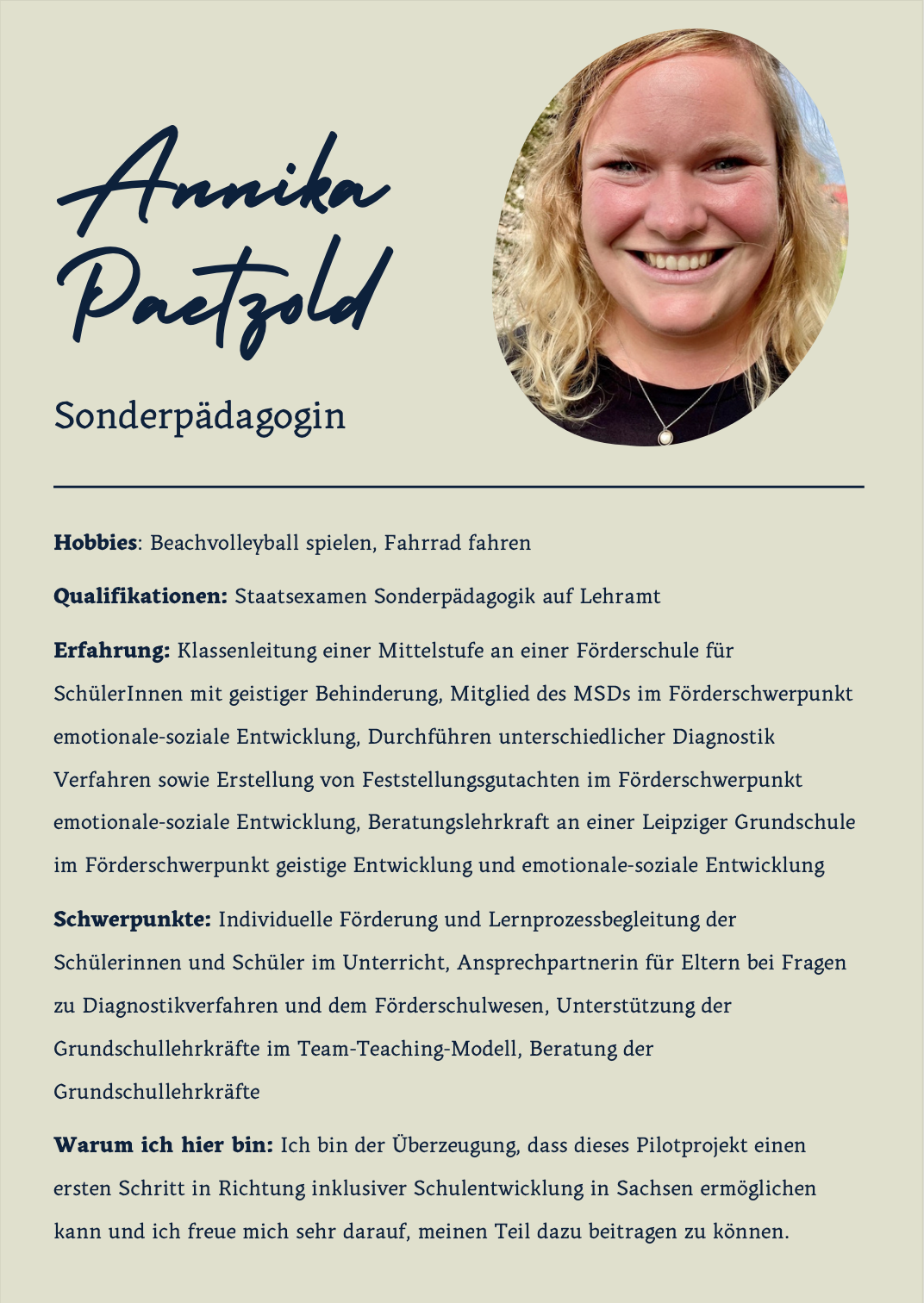 Währenddessen begleiten und gestalten Annika Paetzold, Martha Bordel und Alexander Warnatz die Bildungs- und Erziehungsprozesse der Schüler und Schülerinnen. Dabei ermitteln sie den Förderbedarf und unterstützen ihre Lernprozesse. Sie erstellen unter Berücksichtigung der individuellen Bedürfnisse der Schüler und Schülerinnen passende Lernangebote.