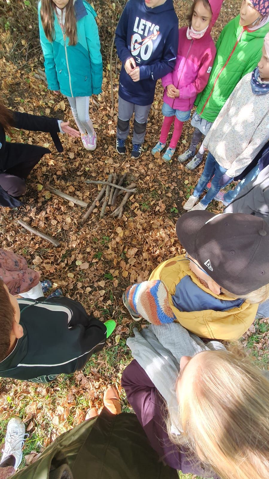 Aus Naturmaterialien wie Ästen, Zweigen und bunten Laubblättern bauten die Kinder einen Igelschlafplatz für den Winterschlaf. Bald ist es soweit. Bis dahin muss der Igel sich noch eine ordentliche Fettschicht anfressen.