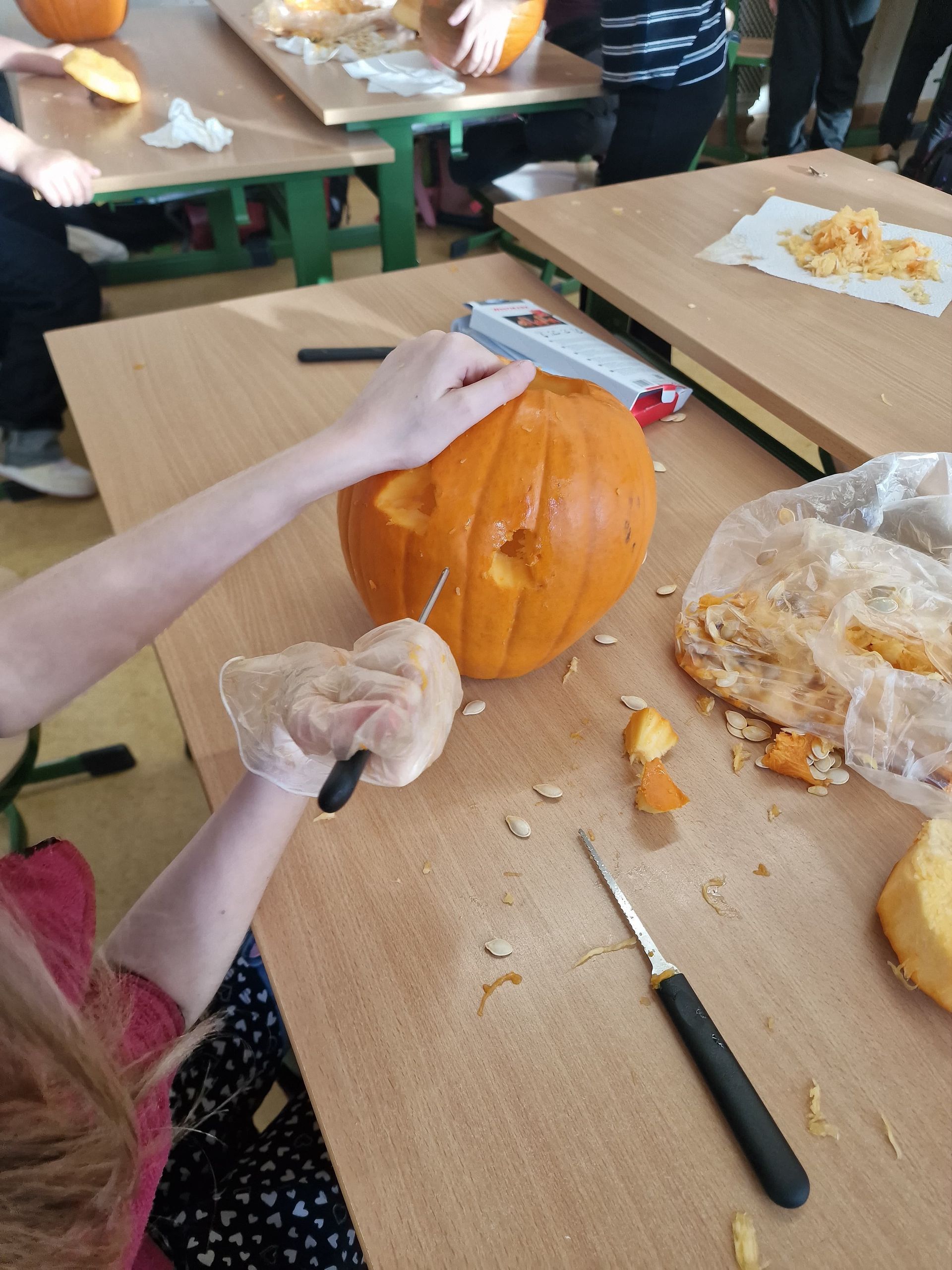 Kürbis-Schnitzspaß in der Klasse 3c ๐