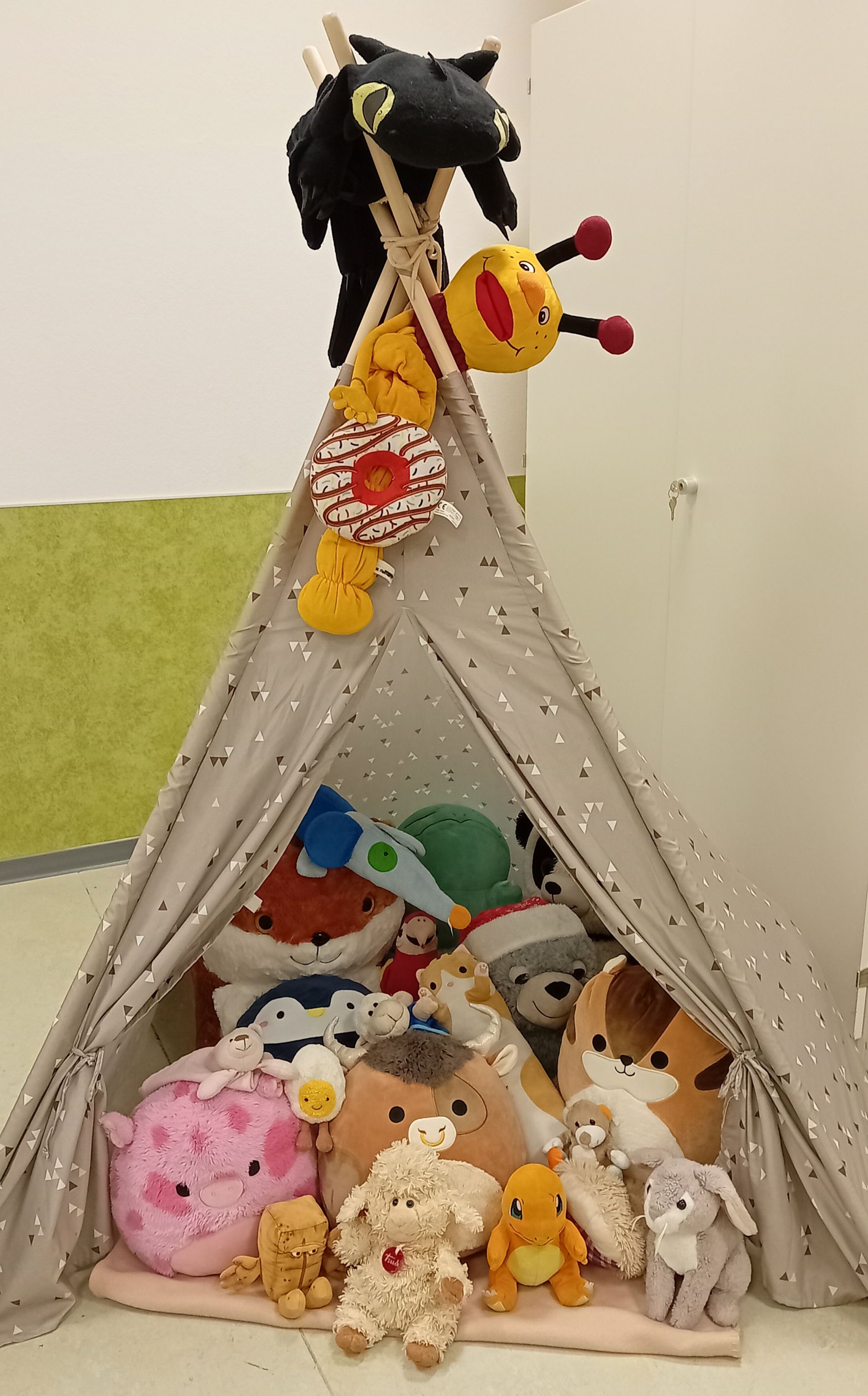 Wir hatten am 19.12.2023 Kuscheltiertag in der Schule. Alle hatten ihr Kuscheltier mit. Erst haben wir alle Kuscheltiere ins Zelt gesetzt und ein Foto gemacht. Das sah cool aus. Dann haben wir ein Spiel gespielt. Alle hatten ihr Kuscheltier in der Hand und dann haben wir die Kuscheltiere weitergegeben. Das war cool. Am Ende war es echt lustig, weil es so schnell ging. Das nächste Spiel war auch sehr lustig. Es haben immer zwei Kinder vorne an der Tafel einen Kuscheltierstapel gemacht. Wir hatten drei Minuten Zeit, um einen richtig hohen Stapel zu machen.