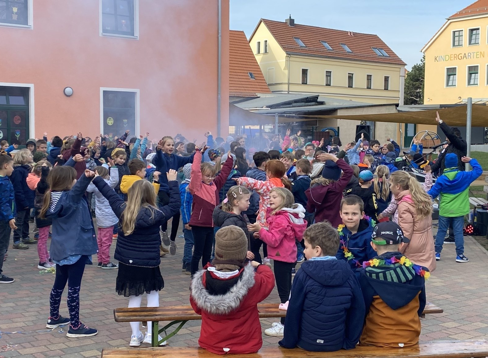 Am Mittwoch, 13.04.2022 fand unsere Frühlings-Disco, eingebettet in einen Projekttag statt. Alle Kinder genossen bei bestem Frühlingswetter Tanz, Spiel und Spaß unter freiem Himmel.