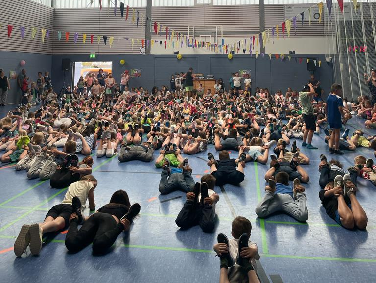 Mit coolen Tanzschritten, Spaß und Aktion begeisterte er alle. Die Kinder jeder Klassenstufe erlernten in kurzer Zeit mehrere Tänze nach toller Musik. Am Ende des Tages durfte das Erlernte in einem kleinen Auftritt vorgeführt werden. Nicht nur die Tänzerinnen und Tänzer hatten dabei eine Menge Freude, sondern auch die Zuschauer.