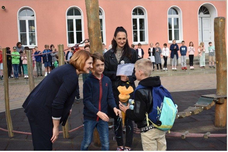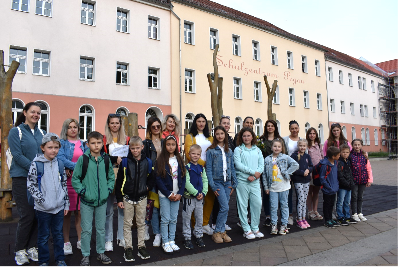 Am Montag, 23.05.2022 war es an der Grundschule Pegau endlich soweit. 12 ukrainische Mädchen und Jungen, in Begleitung ihrer Mütter, wurden auf dem Schulhof der Grundschule von allen Schulkindern begrüßt. Auch ihre Lehrerin Eva Vasileva wurde herzlich in der Schulgemeinschaft aufgenommen und fungierte als Dolmetscherin.