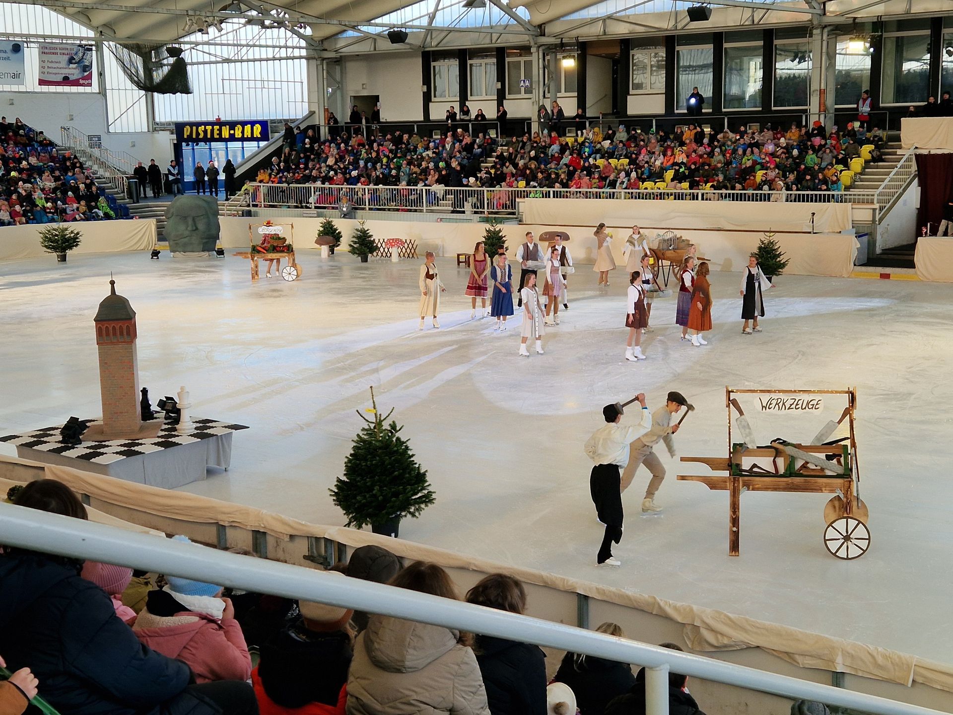 Dort tauchten wir gemeinsam in das Märchen „König Drosselbart“ ein. Die wunderschöne Location, die bunten Kostüme und die tolle Stimmung auf dem Eis begeisterten Groß und Klein. Ein ganz besonderes Highlight waren die echten Pferde am Ende der Vorstellung – sie zogen sofort die volle Aufmerksamkeit der Kinder auf sich und sorgten für großes Staunen.