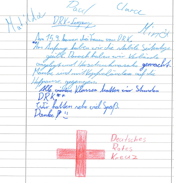 Drei supernette Frauen vom Deutschen Roten Kreuz (DRK) kamen zu uns in die Schule ๐ซ.